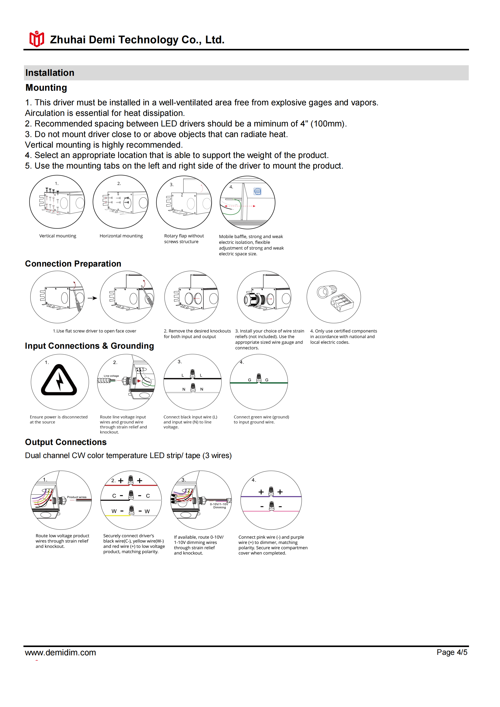 Item number: SHA-H12120J,SHA-H24120J,SHA-H48120J Dim: Triac/0-10V/1-10V/10V PWM / Potentiometer Output Method: PWM Input Voltage: 110-277V Output Voltage: 12V/24V/48V PF: ≥0.9 Efficiency: ≥90% Warranty: 5 years. Protection: short circuit,overload,over-temperature, Certificate: UL list Brand: DEMI