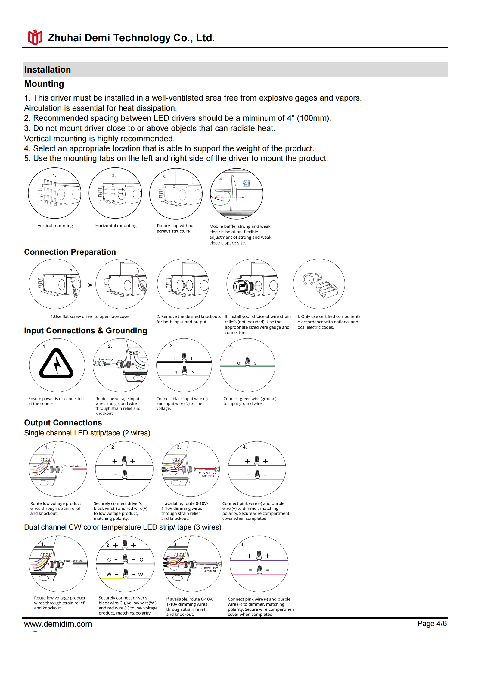 Item number: CSA-12150J,CSA-24150J,CSA-48150J Dim: Triac/0-10V/1-10V/10V PWM / Potentiometer Output Method: PWM Input Voltage: 110-277V Output Voltage: 12V/24V/48V PF: ≥0.9 Efficiency: ≥90% Warranty: 5 years. Protection: short circuit,overload,over-temperature, Certificate: UL list Brand: DEMI