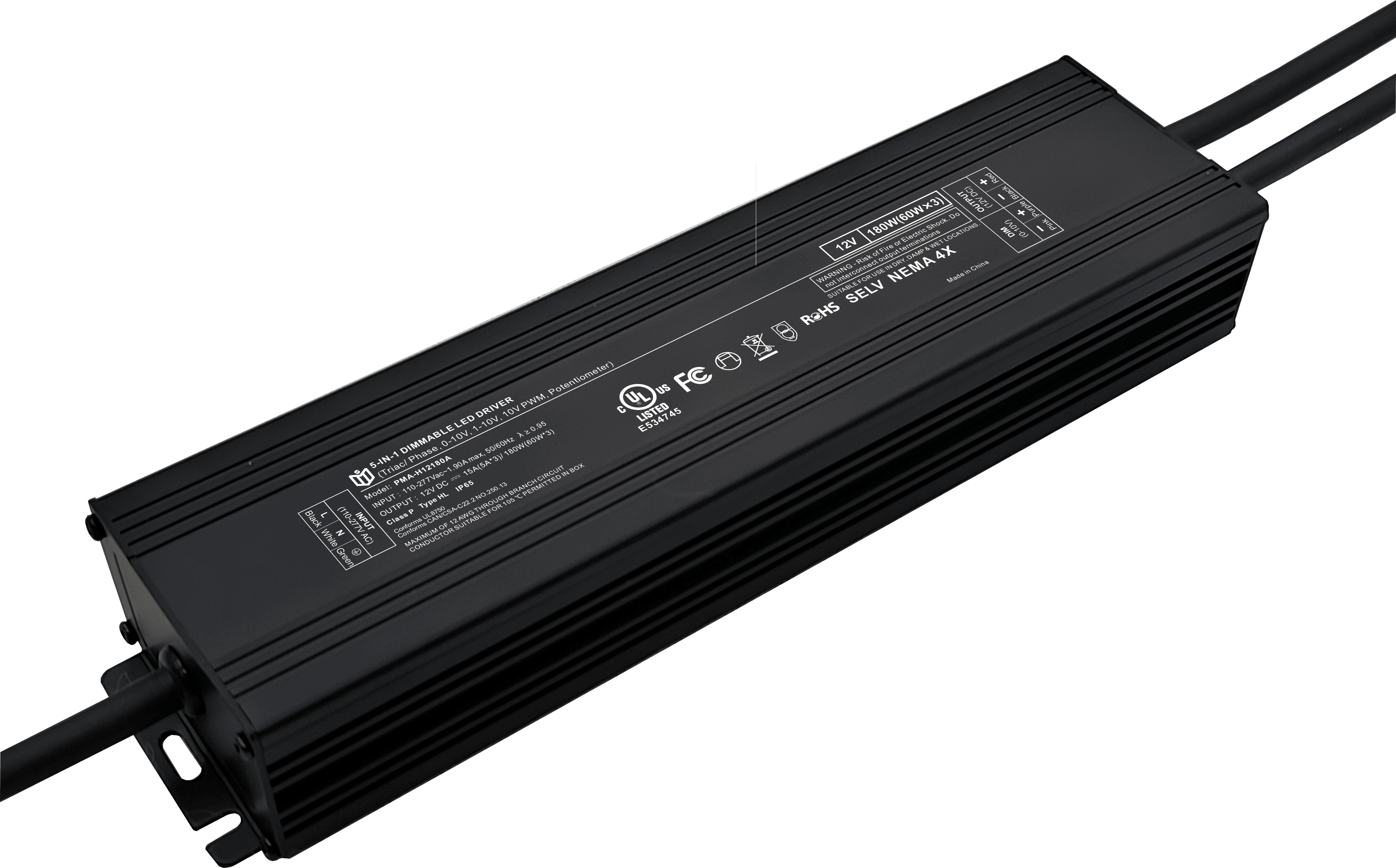 Item number:PMA-H12180A Dim: Triac/0-10V/1-10V/10V PWM / Potentiometer Output Method: PWM Input Voltage: 110-277V Output Voltage: 12V PF: ≥0.9 Efficiency: ≥85% Warranty: 5 years. Protection: short circuit,overload,over-temperature, Certificate: UL list Brand: DEMI